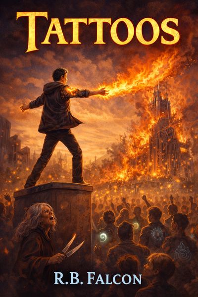 Dante ran through the woods, sweat dripping into his eyes. The fire tattoo on his bicep burned and he shivered, despite the warm night. He could still feel the sting of the tattoo gun on his skin, which drew the tattoo that branded him as part of his family: the Fire family. The angry crowd roared behind him, and he ran faster. His mind flashed back to a week earlier, at his best friend Michael's funeral. Michael was dead because of the tattoo. Dante bolted through the bushes and spotted a small hut with candles burning in it. The yelling behind him got louder and he ran faster. He stumbled up the stairs and banged on the door with his fist, shaking from the adrenaline. The door opened and Dante dived inside. The door shut with a definitive snap.